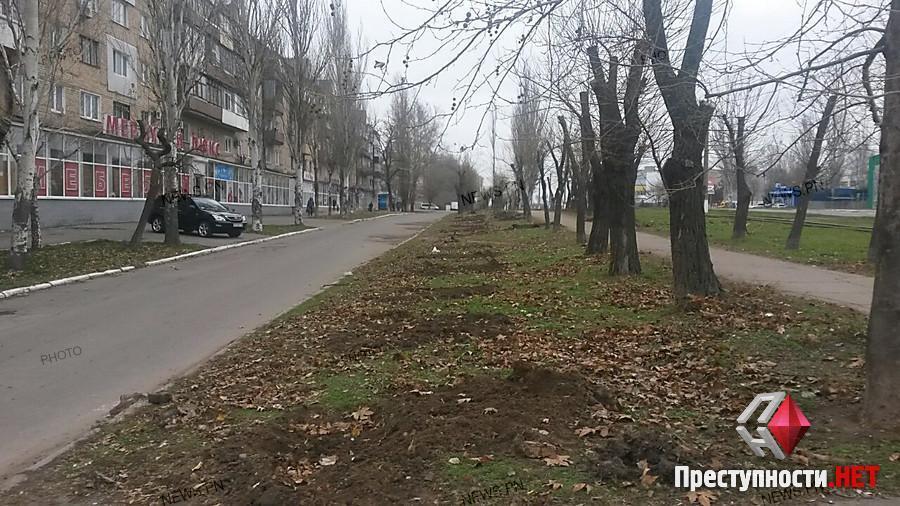 Wollen wir, erinnernim Zentrum von Nikolaev unbekannt haben ausgegraben und haben dekorative Bäume gestohlen.