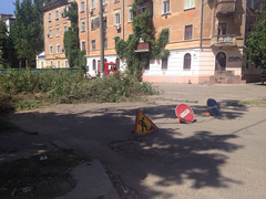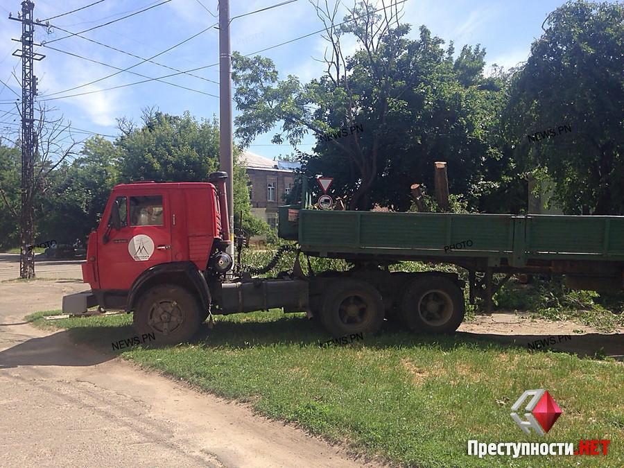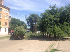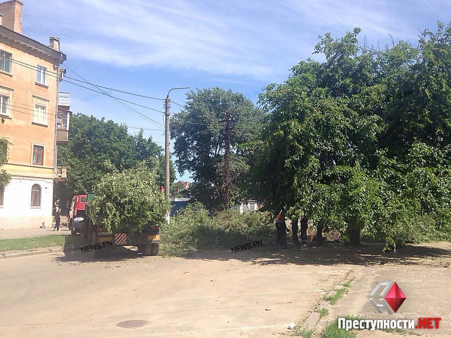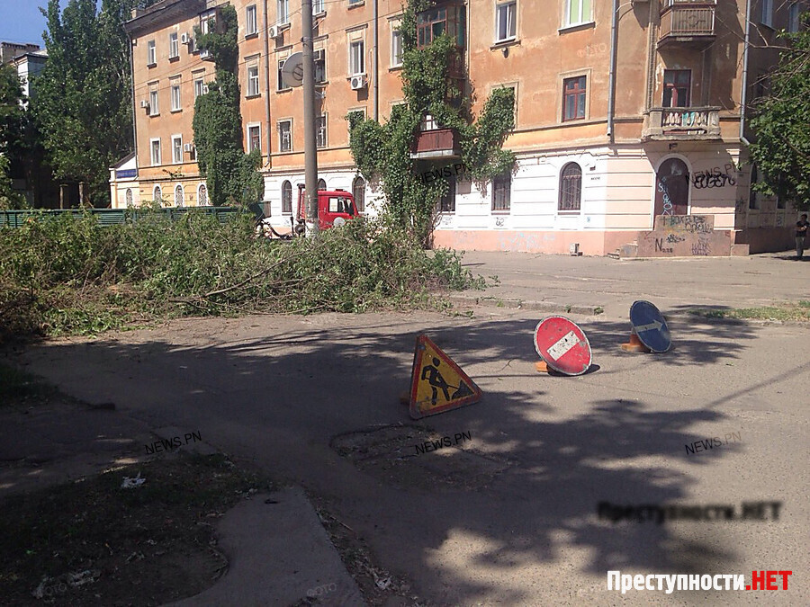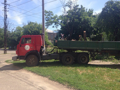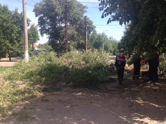 In Nikolaev am Dienstag, dem 9. Juni, um die Überfahrt von Ueli Potemkinskaja und Technikangestellte des PAO «Nikolayevoblenergo» von - für einen Notbaum hat vom Verkehr blockiert.