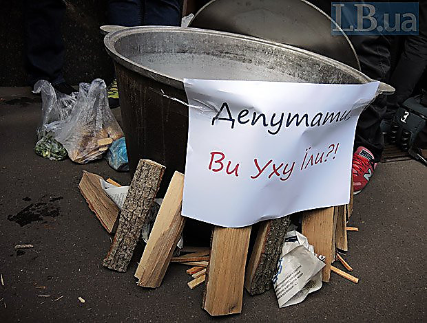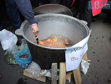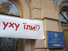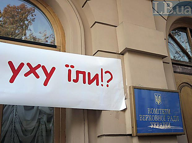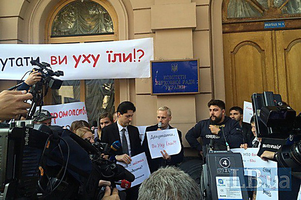 Ungefähr 20 Menschen, unter denen es den ehemaligen Stellvertreter von Juztizminister Vitaly Kasko und den Leiter des Zentrums von Vitaly Anti-Korruptions-Shabunin gibt, haben am Montag eine Protesthandlung in der Nähe vom Gebäude von Ausschüssen der Verkhovna Radas organisiert.