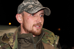 Первым прибыл боец с позывным «Маршал», который уже стал известен и любим благодаря своим многочисленным постам в социальных сетях о буднях и переживаниях николаевских военнослужащих. Он рассказал, что бойцы, оборонявшие аэропорт, не считают себя киборгами, а выполняют поставленную перед ними задачу. «Маршал» рассказал журналистам о быте военнослужащих в Донецком аэропорту, поблагодарил волонтеров за поддержку и доставку провизии. Также поделился впечатлениями о добровольцах «Правого сектора», которые, по его словам, оставили приятные воспоминания о себе.