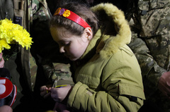 В воскресенье вечером, 19 октября, у КПП 79-й ОАЭМБр, расположенной в микрорайоне Соляные, около 200 человек собрались для того, чтобы встретить николаевских десантников, которые защищали Донецкий аэропорт и по ротации были выведены из зоны АТО несколько дней назад.
