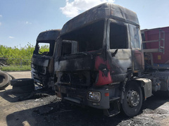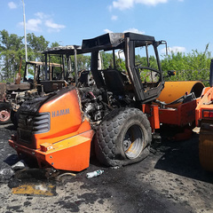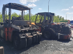 «Огнем уничтожены три дорожных катка, два седельных тягача, экскаваторы, повреждено тентовое покрытие и пластиковые элементы полуприцепа. Спасен один легковой автомобиль, один грузовой автомобиль и два полуприцепа», сообщало тогда ведомство.