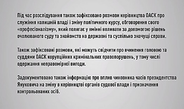 - Зафиксированные разговоры могут свидетельствовать о совершении главой и судьями ОАСК коррупционных нарушений, в том числе получения неправомерной выгоды, - добавили в ГПУ.