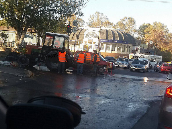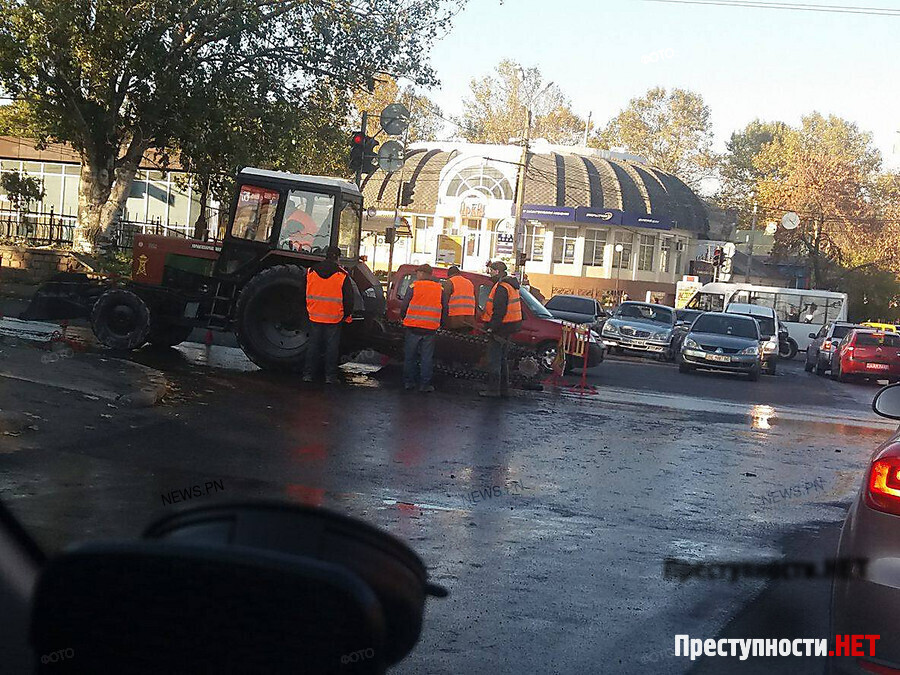 В центре Николаева, на перекрестке проспекта Центрального и улицы Московской днем 28 октября рабочие ГКП «Николаевводоканал» разрыли дорогу.
