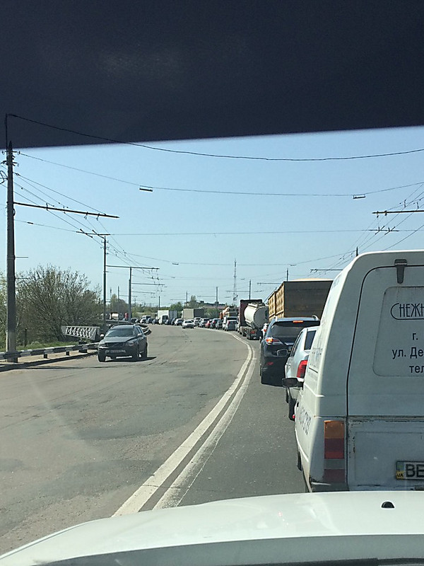 Судя по опубликованным фотографиям с квадрокоптера, пробка из легковых автомобилей и фур также и на въезде в город со стороны микрорайона Варваровка. Подобная ситуация и на выезде из Николаева. Как отмечают очевидцы, затруднен проезд и на Ингульском мосту, и на улице Никольской, начиная от пересечения с улицей Лягина.