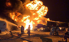 В ГосЧС уточнили, что пожар автоцистерн с топливом - бензином и дизелем - возник в 21:55. В 23:48 подразделениями ГСЧС пожар ликвидирован, жертв и пострадавших нет.