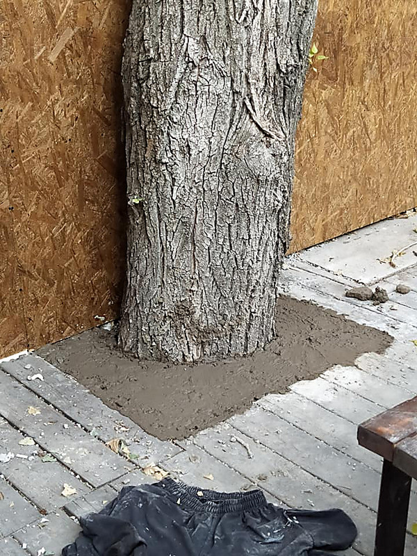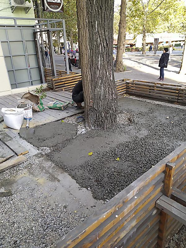 В Николаеве 23 сентября рабочие залили раствором основания двух деревьев возле бара «Сотка».