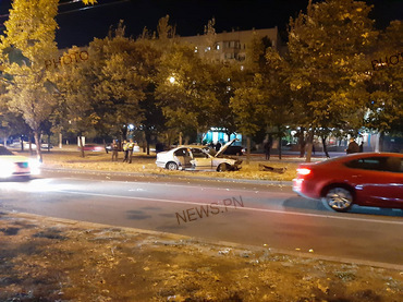 В центре Николаева у автомобиля BMW, на ходу лопнуло колесо - автомобиль слетел с дороги. Чудом обошлось без пострадавших.