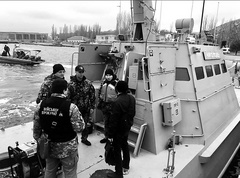 На малом бронекатере «Бердянск» также отсутствует все перечисленное. Кроме того, российскими снарядами пробита бронерубка и машинное отделение, поврежден левый двигатель.