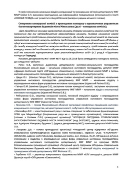 В свою очередь, контрольная комиссия пришла к выводу, что есть вопросы к тому, как именно формировались лоты с перечнем домов на конкурс и к перечню услуг, которые будут предоставляться управляющей компанией. В частности, в перечень лотов вошли дома, в которых уже создано ОСМД, дома, которые физически отсутствуют в Николаеве и т.п.