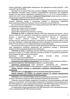 «В конкурсной документации, утвержденной приказом департамента ЖКХ, отсутствует приложение, в котором содержатся технические характеристики каждого объекта конкурса. Отсутствие технических характеристик объектов конкурса не позволила потенциальным участникам конкурса рассчитать экономически обоснованный тариф на коммунальные услуги, о чем было указано в пояснениях руководителей ЖКУ ММР «Пивдень», ЖКП НГС «Бриз», КП «ДЕЗ« Корабел », КП« ДЕЗ «Океан», КЖЕП НГС «Заря», КП «ДЕЗ« Пилот», - говорится в отчете и отмечается, что техническая характеристика домов была приобщена к конкурсной документации за день до раскрытия предложений.