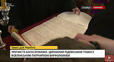 С подписанием томоса для Украины официально завершается процедура получения церковной независимости. Томос - это указ, определяющий статус новосозданной Православной церкви Украины. Он признает и провозглашает ее независимость.
