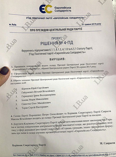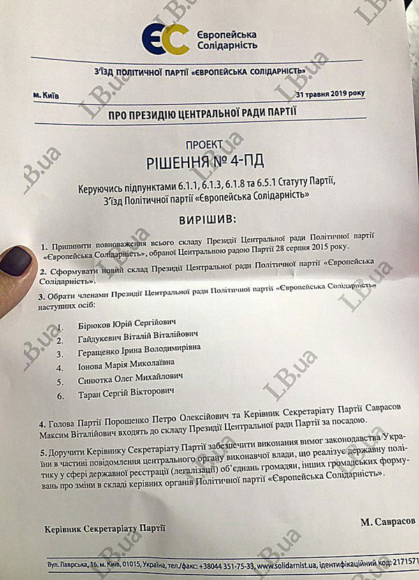 Петр Порошенко как глава партии и Максим Саврасов как руководитель секретариата партии входит в президиум по должности.