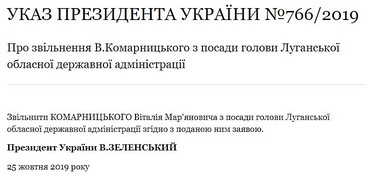 Так, Зеленский своим приказом уволил предыдущего главу Луганской ОГА Виталия Комарницкого в связи с поданным им заявлением.