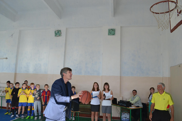 Он посетил школу в поселке городского типа Первомайское, которой помог отремонтировать пол в спортивном зале. Вот уже более трех десятилетий ученики и сельская волейбольная команда достигали успехов в районных спортивных соревнования не благодаря, а вопреки технической оснащенности зала. Теперь им будет, где тренироваться и оттачивать свое мастерство.