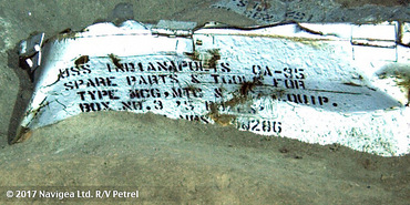 Аллен опубликовал фотографии судна, лежащего на дне океана. На фотографиях коробка с запчастями с надписью Indianapolis, якорь, корабельный колокол, якорная лебедка и часть корпуса с цифрой 35 (номер корабля CA-35).