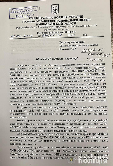 – В полиции заявляли, что есть уже две экспертизы – херсонская и киевская, что в сливочном масле молочных жиров менее 1 процента.