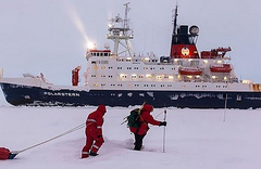 Polarstern собирается в поход в Тромсе. Оттуда он отправится в российскую зону Арктики. Внедрение во льды – в точке вблизи 85 градуса северной широты и 130 градуса восточной долготы. После дрейфа через полюс корабль, по плану, будет «выдавлен» из льдов между северо-восточной Гренландией и Шпицбергеном – в проливе Фрама. Есть опасность, что судно затянет течение Бофор-Гира (по часовой стрелке в Арктике): попав туда, будет сложно сбежать из западни.