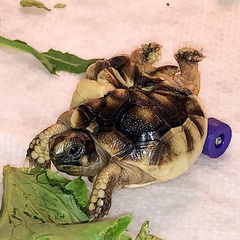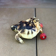 У американца Рэнди Бетца из штата Делавэр, который занимается разведением черепах, появился черепашонок с деформированной спиной. Задние лапы у того были загнуты кверху и почти не работали.