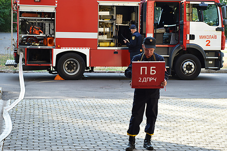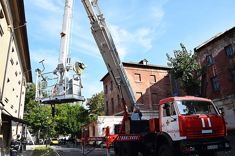 В Николаеве 25 сентября спасатели провели учения на случай пожара в Николаевском областном краеведческом музее «Старофлотские казармы».