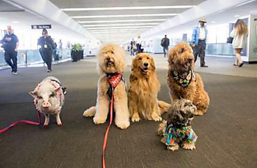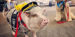 В аэропорту города Сан-Франциско работает свинья. Она должна успокаивать пассажиров-аэрофобов.