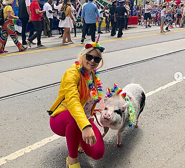 Свинке по имени Лилу 5 лет, и работа ей досталась за ее спокойствие и умение быть дружелюбной. На каждую рабочую смену Лилу привозит хозяйка Татьяна, которая предварительно красит ей «ногти» и надевает рабочую форму.