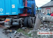 На Николаевщине зерновоз съехал с дороги и врезался в столб