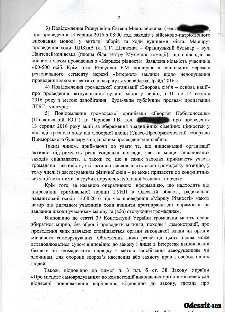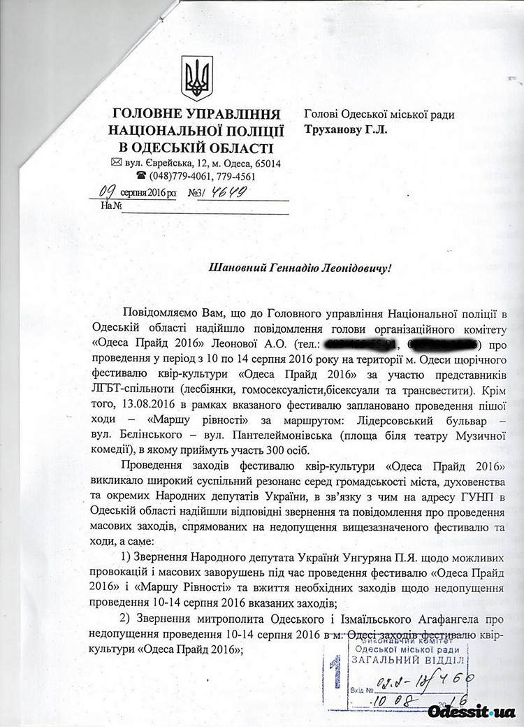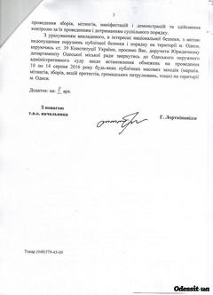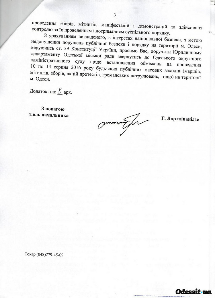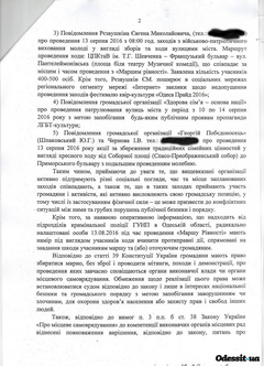 У мерії ж говорять, що звернутися в суд їх змусила позиція одеської поліції, яка в листі на ім'я міського голови фактично констатувала неможливість забезпечити громадський порядок час цієї акції.