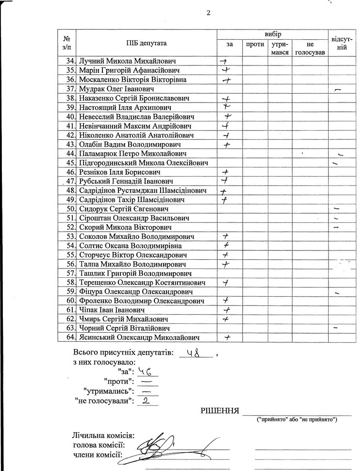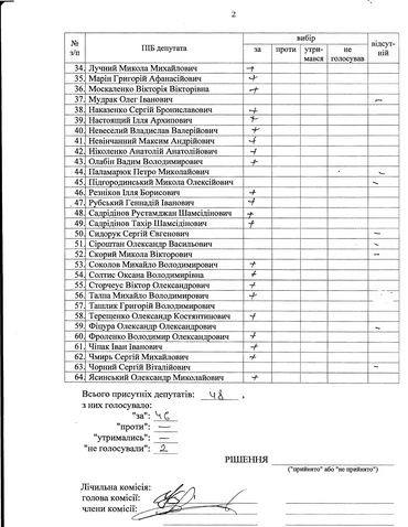 Поіменне голосування депутатів :